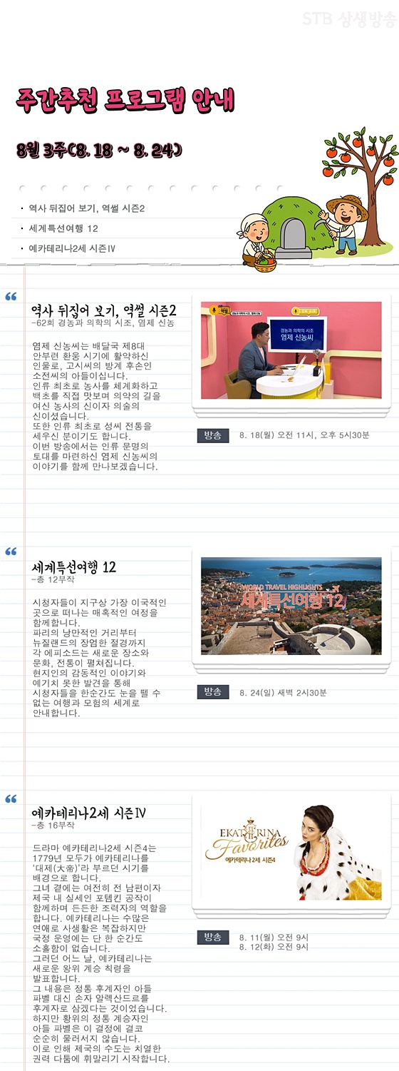 | 진짜 한국 역사와 문화를 알려주는 증산도 상생방송 2025년 8월 4주 tv편성표 (55) | 2025.08.25 |