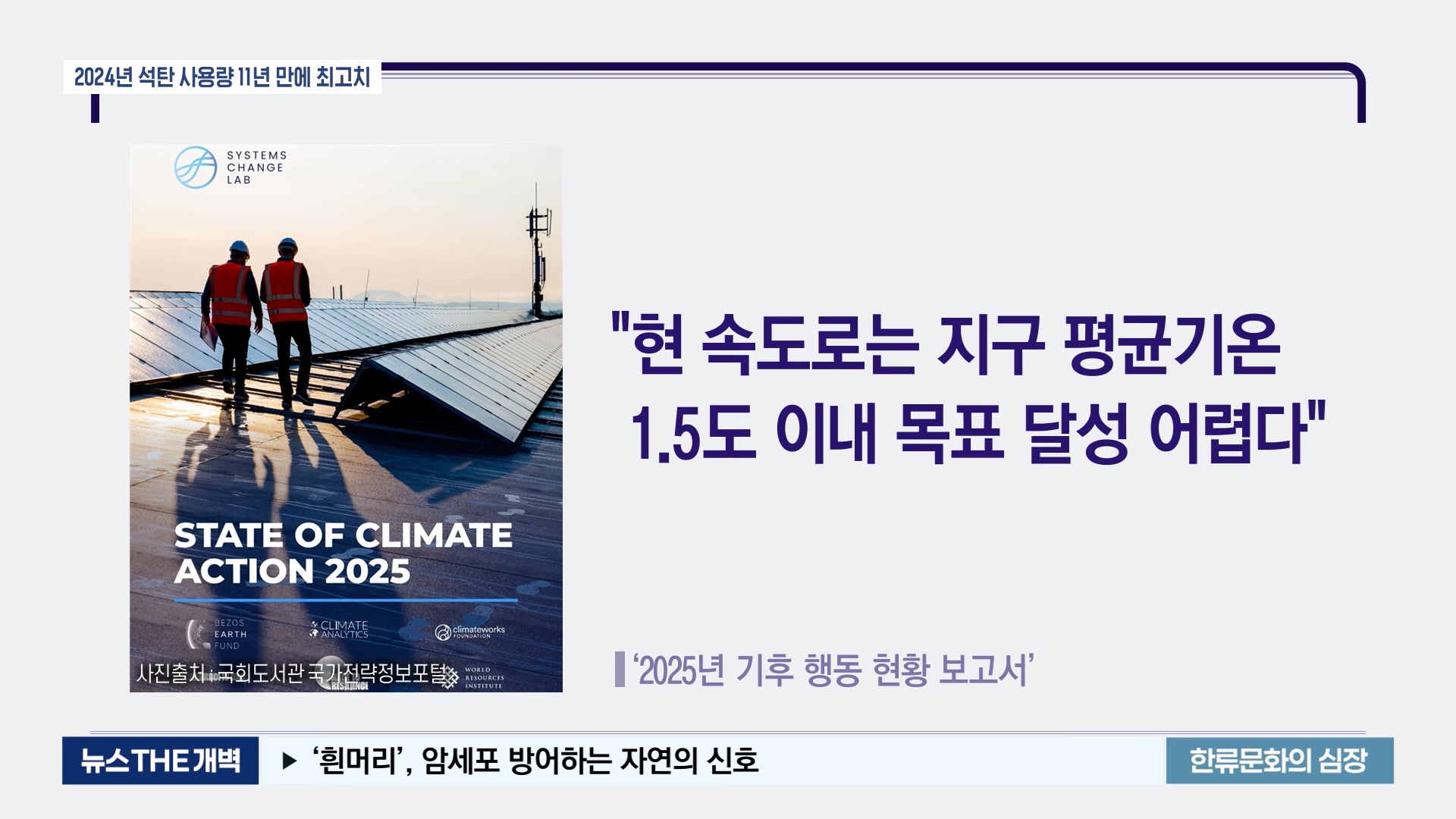 발표한 '2025년 기후 행동 현황' 보고서, 2024년 전 세계 석탄 사용량 사상 최대치
