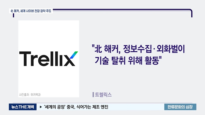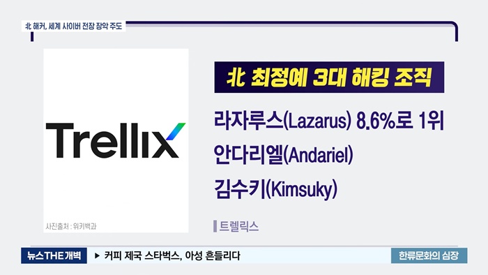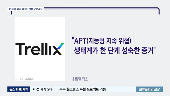 미국의 글로벌 보안기업 트렐릭스에 따르면 최근 몇 개월 동안 전 세계에서 사이버 공격의 중심은 북한이라고 밝혔습니다. 북한의 3대 해킹조직은 '지능형 지속 위협(APT)' 사이버 공격의 37%가 넘으며 전 세계 디지털 전장을 주도하고 있다고 발표했습니다. 북한의 최정예 3대 해킹조직 중 '라자루스'에 의한 전 세계 해킹 시도 사이버 공격은 전체 공격의 17.6%를 차지합니다.