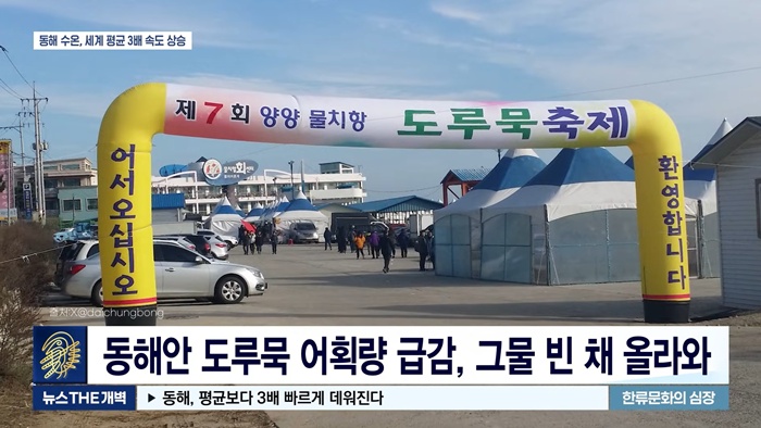 동해의 겨울 별미였던 도루묵은 강원도 고성, 속초, 양양, 주문진, 강릉 등지에서 효자 노릇을 했지만, 동해 겨울 바다에서 도루묵을 보기가 어렵습니다. 또한 동해의 수온이 상승하면서 기존에 서식했던 해조류도 사라지고 있습니다. 동해에서 오징어 조업이 성행했을 때인 1970년대 중반 울릉도 인구는 약 3만 명에 육박했지만, 현재는 1만 명 내외로 줄었습니다.