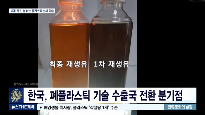 플라스틱과 폐비닐 쓰레기에서 고품질 재생유를 생산하는 친환경 에너지 전문기업인 (주)도시유전은 전라북도 정읍시에 고품질 재생 원료 공장인 '웨이브정읍'을 준공했습니다. '웨이브정읍'은 세계 최초로 태우지 않고 대기오염물질 배출 없이 연간 6,500톤의 폐플라스틱과 폐비닐을 처리해 최대 약 540만 리터의 플라스틱 재생 원료유를 생산할 수 있는 국내 최대 규모의 공장입니다.