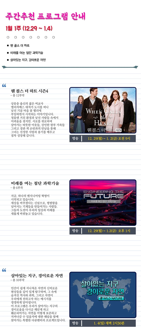 2026년 1월 1주차 - 주간 TV방송편성표, 2025년 12월 29일 ~ 2026년 1월 4일