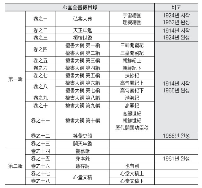 김교헌 선생의 저서 <신단실기>는 20개 조항으로 구성되어 있습니다. <신단실기>의 '교화원류(敎化源流)' 항목만 해도 <해동악부(海東樂府)>, <고기(古記)>, <고사(古史)>, <성호사설(星湖僿說)>, <약파만록(藥坡漫錄)>, <산해경(山海經)>, <신이경(神異經)>, <동국궐리지(東國闕里誌)>, <속완위여편(續宛委餘編)>, <동사류고(東事類考)>, <난랑비서(鸞郎碑序)>, <무릉집(武陵集), <만주지(滿洲志)> 등 한국과 중국의 여러 문헌을 인용했습니다