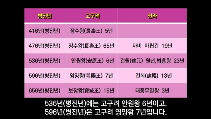 60갑자는 60년을 주기로 계속 반복되기 때문에 '병진년'이라는 간지(干支)는 60년에 한 번 돌아옵니다. 한국 역사학계가 아직도 풀지 못한 수수께끼인 '건흥5년명 금동석가여래입상'의 제조 시기를 '536년' 또는 '596년' 추정은 일본인의 연구 결과입니다. 일제 식민사학자 구로이타 가쓰미는 1925년 <고고학잡지 1925년>에서 '백제 위덕왕 43년(596)'이라고 추정했고, 일본 미술사학자 나카기리 이사오는 <신라·고려 불상, 1971년>에서 '백제 성왕 14년(536)'이라고 추정했습니다.