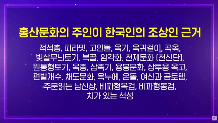 한국 문헌사학계와 고고학계는 우리의 상고사(上古史)는 실존 역사로 인정하지 않고 '신화의 시대'라고 주장합니다. 약 1만 년 전까지 올라가는 홍산문명은 우리와 상관없다고 연구하지 않습니다. 첫 번째 이유는 한국의 역사는 약 1,600년밖에 안 된다는 식민사학을 계승하기 때문이고, 두 번째는 선사시대, 곧 문자가 없었고 돌 도구를 사용하던 미개한 신석시시대는 국가가 없었다는 논리 때문입니다.
