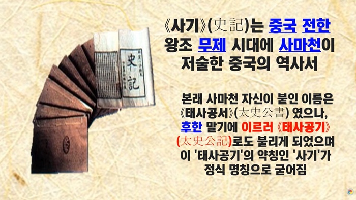 사마천은 한(漢, 전한前漢)나라 무제(武帝)의 명령에 따라 최초의 관찬사서인 <태사공서(太史公書), 사기(史記)>를 편찬합니다. 사마천의 <태사공서>는 처음 편찬한 내용 중 일부는 잃어버려 없어졌고, 또 여러 사람의 글이 잘못되어 뒤섞이는 등의 과정을 거쳐 수백 년이 지나 오늘날 우리가 부르는 <사기史記>라는 이름으로 바뀌게 됩니다.