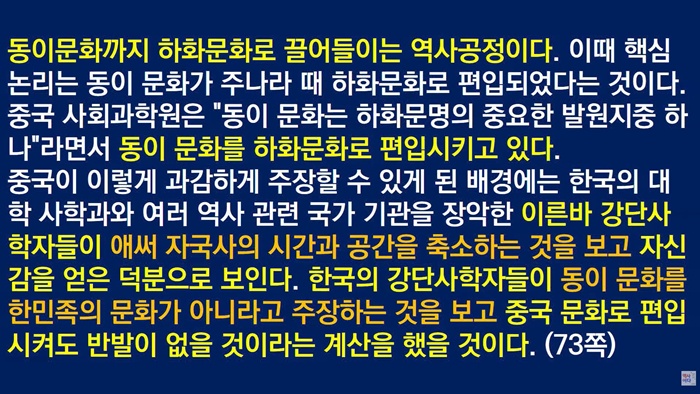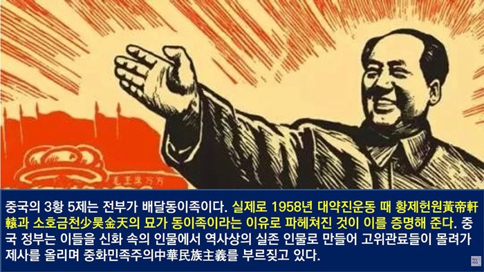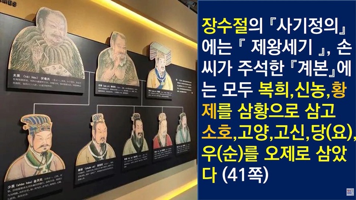 21세기 들어 중국은 국가적 차원에서 역사 왜곡과 조작을 시도하는 이른바 '공정(工程)'을 완성했습니다. '중화문명 탐원공정'은 중국의 역사를 하은주(夏殷周) 시대 이전으로 끌어올리는 역사 조작 프로젝트입니다. 하은주 이전은 삼황오제(三皇五帝)의 시대입니다. 삼황(三皇)은 태호복희, 여와, 염제신농(또는 황제, 수인, 축융, 공공), 오제(五帝)는 황제헌원, 전욱고양, 제곡고신, 요임금, 순임금(또는 소호금천, 황제헌원, 태호복희, 염제신농)을 말합니다.