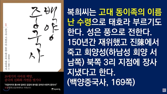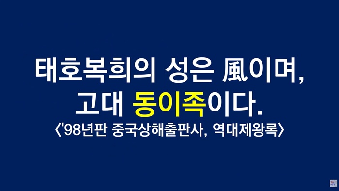 중국 창조신화 삼황오제(三皇五帝) 중 첫 번째 동이족 태호복희씨를 중국인으로