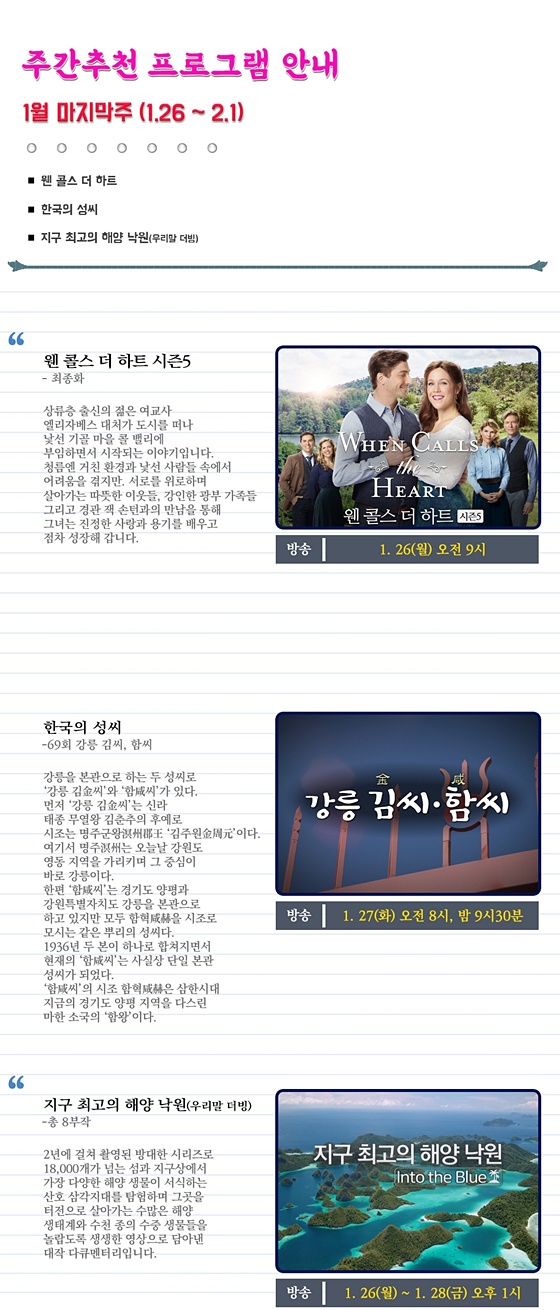 2026년 1월 마지막주 - 주간 추천 프로그램