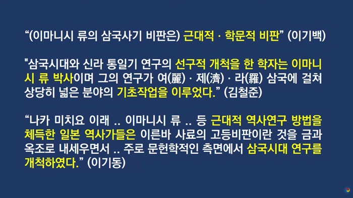 이희진은 일제 식민사학이야말로 진짜 '사이비 역사학'이라며 한국 역사학계의 뿌리라고 비판합니다. 한국 역사학계는 고대 한반도 남부를 야마토 왜가 지배했다는 '임나일본부설'을 주장한 스에마쓰 야스카즈, <삼국사기>의 초기 기록은 믿을 수 없다고 주장한 쓰다 소키치 등은 양심적인 학자로 추앙하며 식민사학을 그대로 받아들였다고 주장합니다.