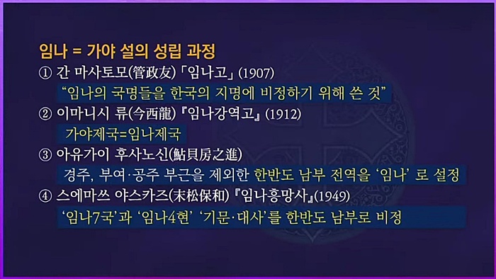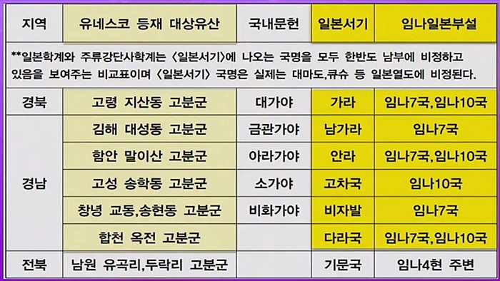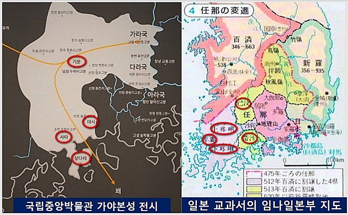 국립중앙박물관의 '가야본성 - 칼과 현'과 문화재청의 '가야고분군 유네스코 세계유산 등재'는 고대 야마토 왜(倭, 일본)가 한반도 남부를 지배했다는 소위 '임나일본부'를 부활시키려는 사실이 밝혀져 국민적 저항을 받고 중단됐습니다. '가야본성 - 칼과 현' 행사는 중단했고, 문화재청의 '가야고분군'은 <일본서기>에 등장하는 지명을 사용하지 않고 등재 신청했습니다.