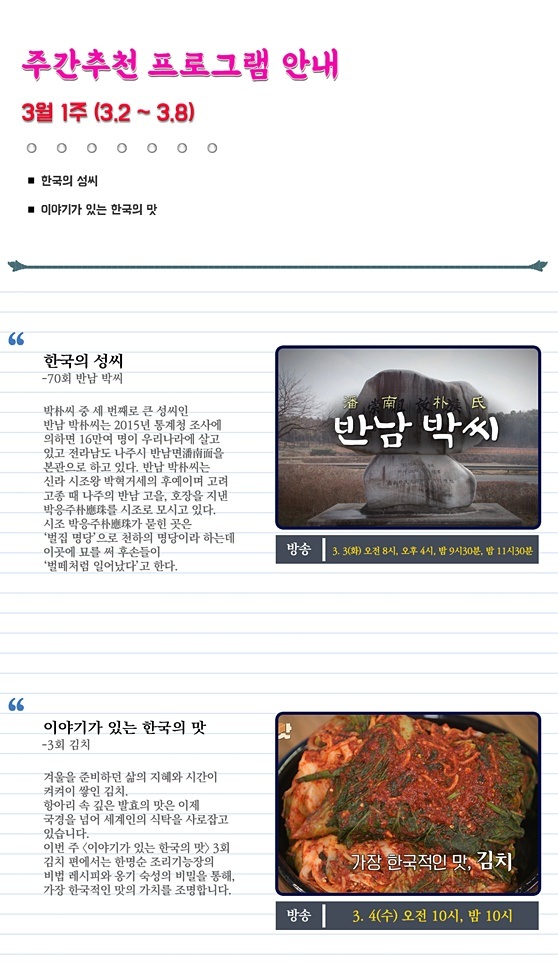 | 아리랑 ARIRANG 귀환의 서사 STB상생방송 2026년 3월 3주 TV편성표 (34) | 2026.03.16 |