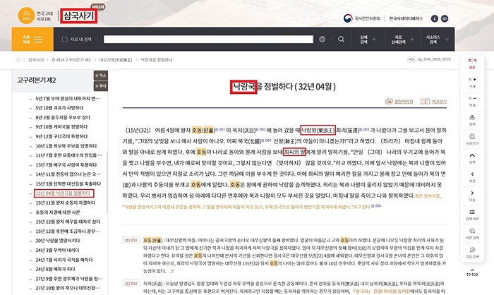 <삼국유사> '기이-낙랑국' 조에서는 중국 <신당서>의 주석을 인용하여 '평양성은 옛날 한(漢) 나라의 낙랑군이다'라고 언급하고, 진흥왕 때 편찬했다는 <국사(國史)>를 인용하여 신라 3대 유리이사금 4년(27) 낙랑을 멸망시켰다고 기술하고 있습니다. <삼국사기>의 '낙랑국 정벌은 서력 32년', <삼국유사>의 '낙랑 멸망은 서력 27년'입니다. 서력 313년까지 한사군의 낙랑군이 존속했다는 주장은 전혀 맞지 않습니다.