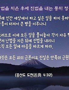 증산도, 진리眞理1115 <생존의 비밀> 세균과 바이러스 전염병은 인간과 문명의 동반자 농경 정착 생활을 시작한 이후 인류와 함께 한 작은 질병과 세계적 대유행의 전염병 증산도 상생방송 2강 - 세균과 바이러스 전염병은 인간과 문명의 동반자 '옛것을 오늘의 거울로 삼는다. 이고위감(以古爲鑑)'과 '널리 옛일을 알면 오늘날의 일도 알게 된다. 박고지금(博古知今)'이라는 말처럼 역사란 현재의 우리를 비추는 거울이며, 오늘의 인류가 새로운 미래로 가는 길잡이가 되는 미래학입니다. 전염병에는 크게 세균 감염을 통해 전염되는 질병과 생물과 미생물의 중간 단계인 바이러스를 통해 전염되는 질병이 있습니다. 공기감염과 비말감염과 접촉감염으로 질병에 감염되는 세균과 바이러스 전염병은 인간의 삶과 문명의 동반자가 되었습니다. '인류 역사는 전염병의 역사다.'라는 말처럼 전염병은 끊임없이 인간을 공포로 몰고 .. 2020. 3. 22. 증산도 상생방송 <생존의 비밀> 세상을 바꾼 전염병과 인류의 역사 인류를 공포로 몰아넣은 전염병의 제왕 천연두부터 전염병의 세계적 대유행까지 증산도 상생방송 제1강 - 인류 문명사, 세상을 바꾼 전염병과 인류의 역사 사회와 국가의 흥망을 좌우한 전염병은 전염병의 제왕 천연두를 시작으로 흑사병(페스트), 장티푸스, 결핵, 인플루엔자 등 수많은 질병과 싸워온 역사입니다. 인류의 역사는 전염병에 좌절한 역사이면서 전염병을 극복한 역사라고 해도 과언이 아닙니다. 전염병은 전쟁과 교류 등 문명과 문명 간에 전파되어 세계사의 흐름까지도 바꾼 인류 문명의 흥망성쇠를 결정짓고 세상을 바꾸어 온 인류의 역사와 함께 한 문명의 동반자입니다. 근현사 들어 최초로 전염병 세계적 대유행으로 가장 많은 희생자가 발생한 스페인독감 같은 경우에는 1차 세계대전과 함께 일어났고 사회적 시스템이 정확.. 2020. 3. 21. 허위사실 가짜정보 허위조작정보 인포데믹(정보전염병) 세상 사람의 눈과 귀를 가리는 허위조작정보와 반드시 알아야 할 진실과 진리 정보화시대 잘못된 정보와 허위사실과 가짜정보를 유포하는 인포데믹(정보 전염병) 증산도 서울 지역 김ㅇㅇ 도생(道生) - 인간이라면 반드시 알아야 할 진리와 진실을 왜곡 조작한 가짜가 난무한 세상 흔히 스마트폰을 손 안의 컴퓨터라고 말합니다. 초·중·고에서 배우지 않은 것들과 대학에서 전공하지 않은 분야까지도 누구라도 손안의 스마트폰을 이용해 pc와 똑같이 엄청난 정보를 얻을 수도 있습니다. pc의 등장은 정보화 혁명이라고 일컬을 정도로 IT 르네상스 시대를 연 혁명적인 변혁이었습니다. 대다수의 사람이 인터넷과 스마트폰을 사용하게 되면서 모든 사람이 정보 접근에 용이하게 되었지만, 자칫 잘못하면 잘못된 정보, 허위조작정보, 가짜정보.. 2020. 3. 20. 세상 모든 병을 고쳐주시는 하느님 아버지 천주님 병든 하늘과 땅과 인간을 고쳐주시는 대의왕(大醫王) 인간으로 오신 하느님 아버지 세상 모든 병의 근원을 밝혀주고 천지를 뜯어고쳐 영원한 강녕을 내려주신 미륵 천주님 충남 지역 김ㅇㅇ 도생(道生) - 자연과 인간 사회의 상극 질서와 문화 때문에 병든 천지를 뜯어고친 천주님 저는 3대째 가톨릭 신앙을 해온 집안에서 태어나 수녀가 되려고 했을 정도로 저와 집안 모두가 독실한 가톨릭 신자였습니다. 당신의 몸은 돌보지 않은 채 쉬는 날 없이 일하시며 항상 우리 가족을 위해 사셨던 아버지께서 갑작스럽게 쓰러져 몇 년간 투병하시다 돌아가셨습니다. 언제나 우리 가족을 이끌어주고 집안의 기둥이셨던 아버지께서 돌아가시면서 수녀가 되고자 했던 꿈을 접고 간호사로 사회생활을 시작했습니다. 질병을 치료하기 위해 입원한 환자와 .. 2020. 3. 19. 인류 문명 대전환과 후천개벽 사상과 인류의 미래 천지자연의 이치(理致)가 성숙됨에 따라 인류의 역사와 문화도 함께 성숙이 된다. 인류 문명의 대전환 후천개벽 사상과 다가올 상생의 질서로 돌아가는 인류의 미래 증산도 충남 지역 성ㅇㅇ 도생(道生) - 자연과 문명과 인간이 개벽하는 인류 문명 대전환은 천지인의 우주적 대변혁 혈기왕성하던 20대 초반 군 복무 당시 소중한 인연이 바로 제 옆에 있었는데, 그때는 알아보지 못하고 근 30년이 되어서 증산도 진리를 만난 후 그 사람이 저를 상제님 진리로 안내해 준 소중한 인연이라는 것을 뒤늦게 알게 되었습니다. 지금의 병영문화는 90년대 초반과 비교하면 격세지감을 느낄 정도로 많이 달라졌습니다. 90년대 초반은 1950년대부터 1980년대까지와는 비교할 수 없을 정도로 군대 문화가 달라졌지만, 그때까지도 후임병에.. 2020. 3. 18. 인간 존재의 의미와 내 삶의 의미를 찾아준 진리 증산도 천지의 변화 이법(理法)과 천지의 마음에 담겨 있는 세상 모든 수수께끼에 대한 해답 인간의 존재 의미와 내 삶의 의미를 찾아준 진리 무극대도(無極大道) 증산도 증산도 충남 지역 이ㅇㅇ도생(道生) - 소우주 인간은 천지의 대이상을 실현하는 천지 생명의 주체이며 우주의 중심 저는 학창 시절부터 나이답지 않게 교우관계와 상급 학교 진학 등 현실적인 문제와 고민보다는 인생의 소중한 가치는 무엇인지 인생이란 무
