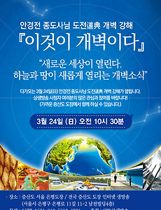 도전92 하나님의 진리의 성전 증산도 도전 사이트와 유튜브 영상 우주의 질서를 다스리시는 조화주 하나님이시며 통치자이신 증산 상제님의 대도(大道) 경전 하나님의 진리의 성전(聖典)이며 도(道)의 법전, 【증산도 도전(道典) 사이트】와 유튜브 영상 인류는 지난 수천 년 동안 동양과 서양의 성자(聖者)와 성자(聖子)의 금과옥조와 같은 말씀을 각 종교 경전을 통해 배워왔습니다. 믿음과 사랑과 천지자연과 인간의 마음과 윤리와 도덕을 강조한 성자들의 말씀은 많은 사람에게 큰 울림을 주었고 인류의 역사를 지탱하는 기둥이 되었습니다. 해박한 지식과 삶의 지혜와 소중한 가르침 등을 전해준 동서고금과 각 종교의 경전에서 볼 수 있는 또 다른 내용은 표현은 다르지만, 천상에서 우주의 질서를 다스리시는 통치자 참하나님이 계신다는 것과 인류의 생사존망을 결정짓는 우주적 대전환의 천지개벽을.. 2020. 9. 2. 증산도 안경전 종도사님 도전 개벽 강해 '다시 개벽'과 '인갱생'을 바탕으로 빛의 인간으로 태어나는 신천지의 인존(人尊) 문화 가을우주의 위대한 비전을 제시하는 증산도 안경전 종도사님의 도전道典 개벽開闢 강해 대립과 갈등, 억압과 차별, 고난과 질곡의 역사를 끝내고 진정한 자유와 평화 공정과 정의가 이루지는 세상이 우리의 눈앞에 바짝 다가왔습니다. 지금은 상극(相克)의 질서로 돌아간 선천 5만 년 역사의 종착역을 향해 마지막 질주를 하고 있습니다. 우리가 사는 이 시대는 인류 역사상 그 어는 때보다도 개인과 개인, 단체와 사회와 국가 간에 치열하게 대립하고 갈등이 최고조에 달해있는 시기입니다. 다시 말해 우주 여름철의 성장과 분열의 화(火) 기운이 사방(四方)으로 흩어지고 번져 사람과 문명과 자연이 모두 마지막 생명의 불꽃을 태우고 있는 절체.. 2019. 10. 22. 안경전 종도사님 증산도 도전 개벽 강해 인류가 염원해온 새 시대 새 문명의 새로운 비전 증산도 안경전 종도사님의 『도전道典』 개벽 강해 세상은 질적으로나 양적으로 빠르게 급변하고 있습니다. 지구촌의 저명한 미래학자가 미래를 예측하기도 하지만, 예측불허의 불확실성이 커지면서 하루가 다르게 급변하고 있습니다. 전문가조차도 예측하기 어려운 인류의 미래지만, 증산도 『도전道典』을 보면 지난 100년간 인류가 걸어온 발자취가 일점일획도 어김없이 증산도 『도전』 내용 그대로 돌아갔다는 사실을 알 수 있습니다. 149년 전 인간으로 오신 우주의 통치자 증산상제님의 생애와 말씀을 수록한 증산도 『도전道典』에는 새 시대 새 문명의 비전을 오롯이 담겨 있습니다. 인간으로 강세하신 우주의 통치자 참하느님이신 증산상제님께서 우주 변화의 원리에 맞춰 새 세상을 개벽.. 2019. 3. 22. STB 상생방송 증산도 도전 강해 콘서트 상생(相生) 문화를 선도하는 STB 상생방송 참하나님의 대도 진리(大道眞理) 법전(法典) 【증산도 『도전道典』 강해 콘서트】 첫 방송 증산도 『도전道典』에는 우주가 창조되고 변화하는 우주 변화의 법칙, 대자연의 운행 이법(理法)이 들어 있습니다. 증산도 『도전道典』에는 우주의 이법(理法)에 맞춰 하나님 아버지와 어머니께서 인간으로 오신 놀라운 이야기가 담겨 있습니다. 증산도 『도전道典』에는 인간으로 오신 참하나님 아버지와 어머니께서 우주의 가을철을 맞아 천지인(天地人)을 개조하는 공전절후의 천지공사(天地公事)가 담겨 있습니다. 증산도 『도전道典』에는 우주의 통치자 참하나님 아버지 증산상제님께서 인간과 신명을 구원하고 상생(相生)의 후천 조화 선경 세계를 여신 생생한 이야기가 담겨 있습니다. 증산도 『도전.. 2018. 5. 31. 증산도 도전 속의 놀라운 천지공사 참하나님의 우주 통치 법전 증산도 『도전道典』 속의 놀라운 천지공사 세계 증산도 전남 지역 신ㅇㅇ 도생(道生) - 인류의 새로운 미래가 있는 증산도 『도전』 속의 놀라운 천지공사 세계 저희 가정은 기독교를 신앙하는 가족과 종교를 가지지 않은 가족들로 구성되어 있습니다. 교회를 다니는 가족도 열성적인 기독교 신앙인이라기보다는 세상에서 흔히 말하는 썬데이 크리스천입니다. 직장 후배가 예전부터 증산도 상생방송을 시청하라고 여러 번 권했습니다. 후배가 상생방송 시청을 권할 때마다 건성으로 대답만 했는데, 우연히 집에서 TV를 보다가 증산도 상생방송을 시청하게 됐습니다. 증산도 상생방송에서는 프로그램이 나오고 있었습니다. 증산도 『도전』에 있는 상제님과 태모님의 말씀이 TV를 통해 나오는 순간 가슴이 뭉클해지고 .. 2018. 5. 29. 증산도 도전 강해 콘서트 및 동지 대치성 증산도 안경전 종도사님의 『도전道典』 강해 콘서트 및 무술년(戊戌年) 여는 동지 대치성(大致誠, 大天祭) 봉행 증산도 『도전道典』에는 미래의 지구촌 통일 문명과 우주촌 문명시대의 비전이 담겨 있습니다. 증산도 『도전道典』은 후천대개벽을 극복하는 인류 구원의 복음서입니다. 증산도 『도전道典』은 상생(相生)으로 열리는 후천 5만 년 인류 생활문화의 원전입니다. 증산도 『도전道典』은 인간 존엄과 인간 중심의 역사, 인존(人尊) 문화를 여는 생명의 교과서입니다. 증산도 『도전