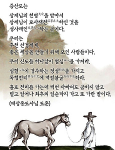 상제님84 증산도의 진리-인류구원을 이루는 강증산 상제님의 종통 상생(相生)의 후천 조화 선경 세계를 여는 『증산도의 진리』 - 8장 도운 공사(道運公事) 제4절 천지대업을 완수하는 제3변 추수(秋收) 도운 3. 도성덕립의 제3변 도운 마무리 과정: 인류구원을 이루는 강증산 상제님의 종통(宗統) 증산도 천지인(天地人) 삼계(三界) 우주를 다스리시는 천지의 통치자 하나님이신 강증산 상제님께서 1871년 인간으로 강세하셨습니다. 인간으로 강세하신 천주님, 강증산 상제님께서는 상극(相克)의 선천 5만 년 역사를 문 닫고, 상생(相生)의 후천 5만 년 조화 선경 세계를 여시는 인류구원의 프로젝트 천지공사를 보셨습니다. 천지공사는 세상의 역사가 전개되는 세운(世運) 공사와 상제님 대도(大道) 진리의 종통(宗統)인 증산도가 역사의 전면에 등장하는 도운(道運) 공사로 나누어집니다.. 2017. 8. 18. 증산도의 진리 - 강증산 상제님 종통 진법 제3변도운 시작 대자연의 섭리 『증산도의 진리』 - 8장 도운 공사 제4절 천지대업을 완수하는 제3변 마무리 추수 도운: 강증산 상제님의 종통 진법(宗統眞法) 2. 제3변 마무리 추수 도운(秋收道運)의 시작과 전개 대우주의 통치자 하느님으로 천상 옥경에서 천지를 주재(主宰)하시는 옥황상제님이시며 미륵존불이시며 천주(天主)님이신 강증산 상제님께서 우주 1년의 가을개벽기를 맞아 지상의 인간으로 강세하셨습니다. 인간으로 오신 인존(人尊) 천주님이신 강증산 상제님께서는 1901년부터 1909년까지 9년 동안 하늘과 땅과 인간 세계를 개조(改造)하는 천지공사를 보셨습니다. 강증산 상제님의 천지공사는 인류가 나아갈 이정표이며, 가을개벽기에 천상의 신명(神明)과 지상의 인간을 구원하는 인류구원 프로젝트입니다. 새 역사의 설계도, 인.. 2017. 8. 17. 증산도의 진리 - 강증산 상제님의 종통 진법 제3변 추수도운 『증산도의 진리』 - 8장 도운 공사 제4절 천지대업을 완수하는 제3변 마무리 추수 도운: 강증산 상제님의 종통 진법(宗統眞法) 출현 1.추수 도운(秋收道運)의 두 지도자가 받은 도수(度數) 천지공사(天地公事)는 인간으로 오신 천주님, 천지의 질서를 다스리시는 증산 상제님께서 천지의 이법(理法)에 맞춰 묵은 하늘과 땅을 문 닫고 새 하늘 새 땅을 여신 우주 역사 심판입니다. 천지공사의 세운 공사(世運公事)는 지구촌의 인간 역사 질서 과정이며, 강증산 상제님의 진리가 난법(亂法)에서 진법(眞法)의 역사로 자리 잡는 도운 공사(道運公事) 과정의 이정표입니다. 강증산 상제님께서 보신 천지공사는 만물 변화의 원리인 생장성(生長成)의 원리를 바탕으로 보셨습니다. 강증산 상제님께서는 삼변성도(三變成道)와 함께 삼천.. 2017. 8. 16. 인존시대의 천주님 강증산 상제님 108주 어천절 대치성 하추교역기(夏秋交易期)에 천상 보좌에서 인간으로 오신 인존(人尊) 천주님 인존시대(人尊時代)를 열어 놓으신 강증산 상제님 108주 어천절(御天節) 대치성 강증산 상제님은 우주의 여름과 가을이 교차하는 하추교역기(夏秋交易期)에 진멸지경(盡滅之境)에 이른 인간과 신명(神明)을 건지시기 위해 하늘 보좌에서 인간으로 강세하신 인존(人尊) 천주님이십니다. 인존 천주님 강증산 상제님께서는 선천 상극의 구천지(舊天地)를 문 닫고 후천 상생의 신천지(新天地), 인존시대 새 역사의 문을 활짝 열어 주셨습니다. 지나온 선천(先天) 5만 년 상극의 역사는 적자생존하고 우승열패한 세상이었으며, 그로 인해 인간 역사는 갈등과 투쟁, 분열과 대립의 연속이었고, 이 과정에서 모든 인간은 분노와 좌절의 아픔을 겪으며 크고 작은 원한.. 2017. 8. 11. 증산도의 진리 - 제2변 도운 강증산 상제님의 종통 도맥 『증산도甑山道의 진리』 - 8장 도운 공사 제3절 제2변 도운 개창사와 강증산 상제님의 종통 도맥: 상제님의 대행자 『증산도의 진리』 - 8장 도운 공사(道運公事) 제3절 제2변 도운 개창사(開創事)와 강증산 상제님의 종통 도맥(宗統道脈) 중심 내용 - 아버지 하나님이신 강증산 상제님의 9년 천지공사로 종통 대권을 전수받으신 어머니 하나님 태모 고수부님께서 증산도의 진리 씨앗을 뿌리며 제1변 도운(道運) 역사가 시작됐습니다. 강증산 상제님의 천지공사는 크게 세상의 문명사가 전개되는 질서 세운(世運) 공사와 상제님의 진리 증산도의 역사가 전개되는 도운(道運) 공사로 나누게 됩니다. 상극의 시대를 끝 막고 상생의 새 시대를 여는 강증산 상제님의 천지공사는 가을개벽의 상황까지 펼쳐지는 지구촌의 운명의 시간표,.. 2017. 8. 10. 증산도의 진리 - 도운공사(상제님 종통 계승과 도운의 개시) 『증산도의 진리』 - 8장 도운(道運) 공사 제1절 상제님의 종통 도맥과 도운의 개시(開始): 수부님의 종통 대권 계승 현대의 결말과 새 출발 『증산도의 진리』 - 8장 도운 공사(道運公事) 제1절 증산 상제님의 종통 도맥(宗統道脈)과 도운(道運)의 개시: 어머니 하나님 태모 고수부님의 종통 대권 계승과 도문(道門) 개창 중심 내용 - 증산 상제님께서 보신 천지공사는 세상이 전개되는 세운 공사(世運公事)와 상제님 진리가 전개되는 도운 공사(道運公事)가 있습니다. 세운 공사는 상극의 선천 5만 