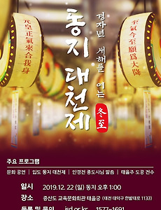 천지조화 태을주 도공 전수 증산도 동지대천제 대우주의 조화성령을 받아 내리는 동서양 9천 년 기도와 수행문화의 열매 천지조화(天地造化) 태을주 주문과 도공(道功) 수행 전수의 날 2020 경자(庚子)년을 여는 증산도 천지보은(天地報恩) 동지대천제(冬地大天祭) 묵은 한 해를 보내고 새로운 한 해를 시작하는 일양시생(一陽始生)의 동지(冬至)는 말 그대로 겨울이 더할 수 없이 극진하다는 날입니다. 동지(冬至)의 '지(至)'에는 '이르렀다', '도래했다'. '극에 달했다'라는 의미가 있는데, 하지(夏至)를 기점으로 밤의 길이가 점차 길어져 동지 때 이르러서는 1년 중 밤의 길이가 가장 긴 날이 되고, 동지를 기점으로 낮의 길이가 점차 길어진다는 것을 알 수 있습니다. 현상적으로 보면 일 년 중 밤의 길이가 가장 긴 동지는 양(陽) 기운이 가장 약하고 음(.. 2019. 12. 15.